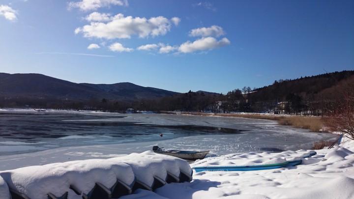 山中湖はいい天気ですが、最高気温-3℃の真冬日でした