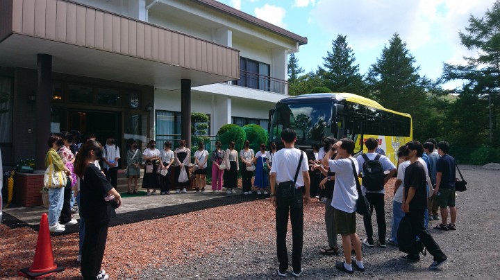 硬式テニスの皆さん、夏合宿に当館をご利用いただきましてありがとうございました。スタッフ一同、またのお越しをお待ちしております。気を付けてお帰りください。