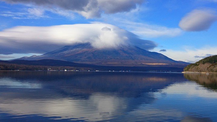 昨日の夜、冷たい雨が降りましたが早朝から晴れ間が見えた山中湖。富士山には冬らしく雪が積もっていますが、今まで雪が無かった石割山にも雪がありました。写真は朝9時、まるで今降っているかのような雲の掛かり具合でした。夕方には無くなってしまいました。今日の山中湖は晴れ、最低気温-3℃最高7℃