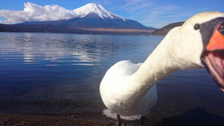 【おもしろ写真】山中湖畔で白鳥に遭遇