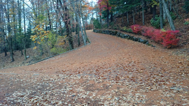 段下のテニスコートを整備しているローラー転圧車は水注入式です。オフシーズンの冬に向けてのローラー内の水を抜きました。少しずつですが冬支度。