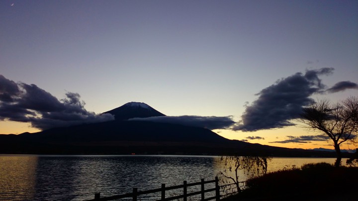 朝8時までは雨が降っていましたが、正午になると晴れ間が見えて1時には最高気温19℃、日焼け止めは必要なくらい強い日差しでした。写真は午後4時50分、1分ごとに色が変わっていく富士山は見ていて飽きません。お越しの際はたくさん写真を撮ってくださいね。15/11/15