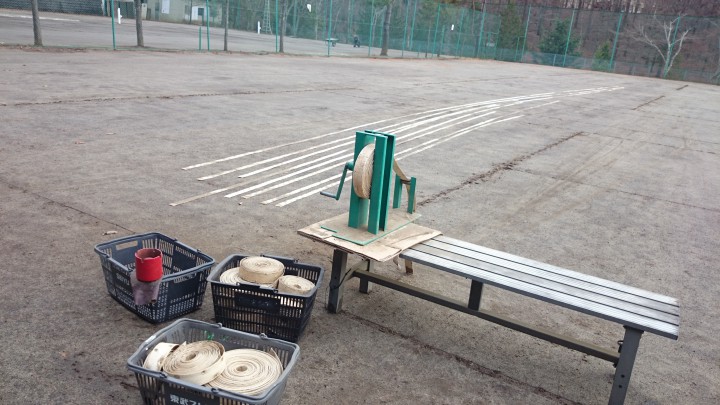 本日、当館所有クレーコートのラインテープを取り外しました。山中湖では冬期期間中、霜柱によりラインテープの釘が抜けてしまうため、あらかじめ取り外しておきます。雪が溶けた春先に再びテープをコートに設置して、新たなシーズンを迎えます。写真は綺麗に撒かれたラインテープです。来年まで一休み。