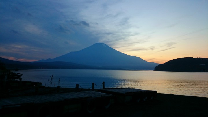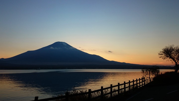 朝から雲一つ無い天気の山中湖、早朝氷点下にはなりませんでしたがとてもヒンヤリして寒く感じました。写真は夕方4時36分の日没後の富士山です。空気が澄んでいて景色がとても綺麗でした。