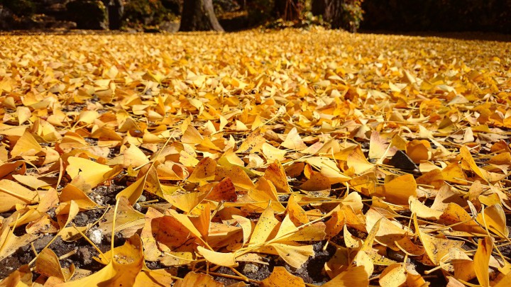 平野にある寿徳寺には大きなイチョウの木があります。その周りには黄色く色づいたイチョウの葉っぱがまるでじゅうたんのように落ちています。映画の1シーンみたいな感じで感動しました。近くに来たら見に来て下さいね。