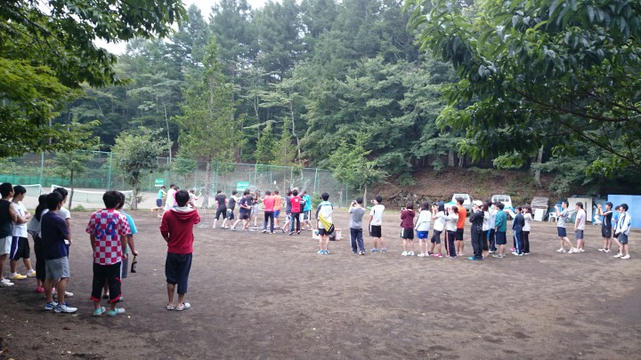 テニスが大好きなローランギャロの皆さんは今日も各コートに分かれて仲良く練習です。その後休憩を挟みながら試合をしたりメリハリのあるテニスをしていました。夜は恐怖の肝試し。テニスの他にもイベントがたくさんあって楽しい合宿になりそうですね。今日の山中湖は昨日からの雨が朝方まで降りましたが、その後は晴れていい天気になりました。最高気温25℃最低14℃15/09/04