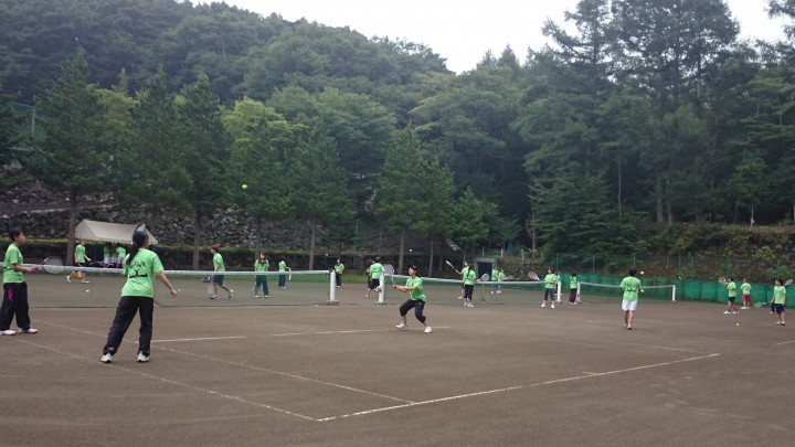 朝から肌寒い山中湖ですが、宿泊中のフェニックス様は元気にテニスをしています。各コートに分かれて球出し練習や試合を楽しんだ1日でした。和気あいあいとした中でキビキビとテニスをしています。明日は夏合宿最終日です。みんなとの思い出をたくさん作って下さいね。今日の山中湖は曇り、最高気温23℃最低16℃15/08/24