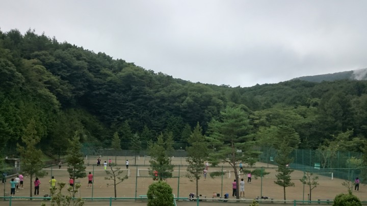 宿泊中の北の丸様は今日で合宿5日目ですが、元気にテニスを楽しんでします。残念ながら曇っているため富士山を見ながらのテニスとは行きませんでしたが、その分涼しく快適にプレーが出来ると思います。あと1日ですが楽しんで下さいね。今日の山中湖は曇り一時雨、最高気温19℃最低16℃