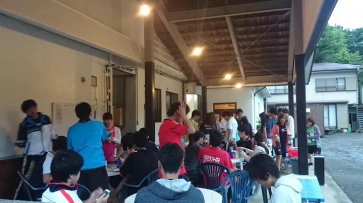宿泊中のフェニックス様は各コートに分かれて球出し定期的に休みを交えてメリハリのある練習をしていました。そして夕食はお楽しみのBBQ、その後はグラウンドで花火を楽しみました。今日の山中湖は曇り、最高気温24℃最低19℃。日が差さないと肌寒く、パーカーを羽織っているお客さんが多くいました。15/08/21