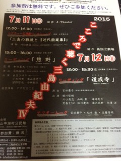 「こころで聴く三島由紀夫?」が今年も山中湖で開催されます。今年は7月11日(土)、12日(日)に山中湖公民館にて、参加費無料です。演目は「熊野」(11日)「道成寺」(12日)です。申し込み&お問い合わせは『三島由紀夫文学館』までお願いします。