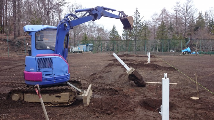 今年の山中湖は雪がとても少なく凍上により?8〜10テニスコートのポールが最大10cm浮き上がってしまいました。雪が多ければ積雪の断熱性で大気に冷たさが地中に伝わりにくいため凍上が起こりにくいです。このコートは後日トラクターで表面を耕し整備します。