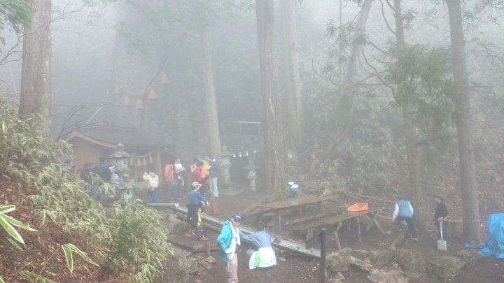 今日は朝から石割神社の道普請が行われました。地域住民の協力の元、石割神社までの参道がとても綺麗になりました。天気は霧雨状態で残念ながら壮大な景色は見ることは出来ませんでした。天気が良ければすばらしい景色が望めますので、一度足を運んでみてはいかがでしょうか。駐車場から石割神社までは40分ほどです。