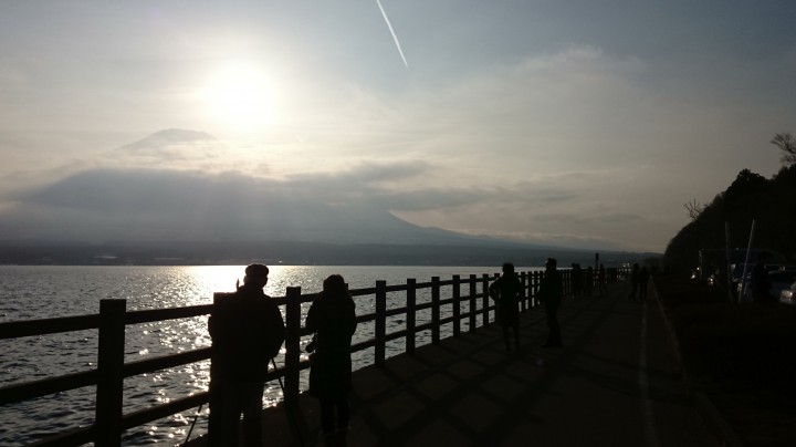 山中湖の周辺には無料駐車場があります。週末になると長池地区親水公園の駐車場は満車状態です。夕方4時10分、今日の富士山はもやがかかって幻想的な雰囲気です。今日の山中湖は晴れ、最低気温-10℃最高6℃