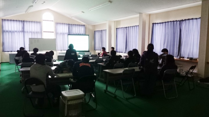 宇宙航空研究会の皆さま、当館をご利用いただきまして誠にありがとうございました。明るく楽しい雰囲気で仲がとても良かったですね。また山中湖に来て下さい。スタッフ一同またのお越しをお待ちしております。今日の山中湖は雪、最低気温-6℃最高2℃