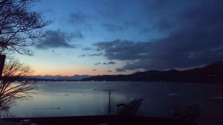 夕暮れの山中湖