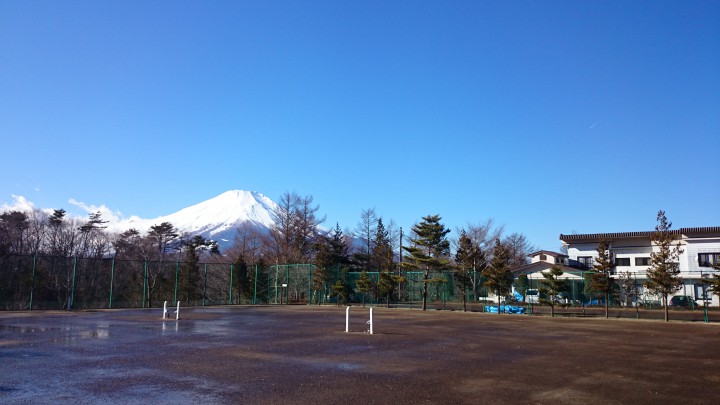 冬のテニスコートからの富士山