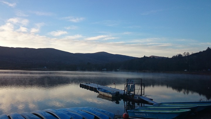 久しぶりに朝から良い天気の山中湖、朝日が出る前に山中湖の東側から岬を見に行ったところ、気嵐(毛嵐)が現れていていました。凄く静かで幻想的な一瞬でした。【気嵐】けあらし:冬の寒い朝、大気の温度より湖水の温度が高い場合、湖水面から蒸発した水蒸気が大気によって急激に冷やされることによって起こる蒸気霧の一種。朝日が昇り、大気の温度が上がることによって消える。朝方の最低気温-1℃最高6℃、夜は-6℃。