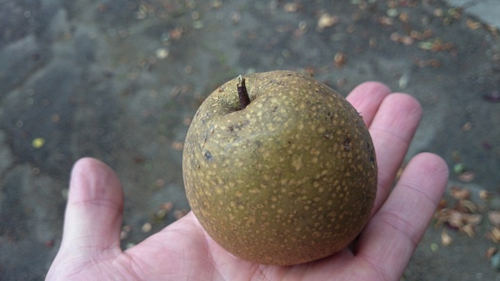 当館の敷地に梨の木があり、今日はその梨を収穫しました。が、とても硬く石のようでした。大きさも小さいので気分だけ秋の収穫〜。いつかは大きな梨となって美味しく頂きたいです。