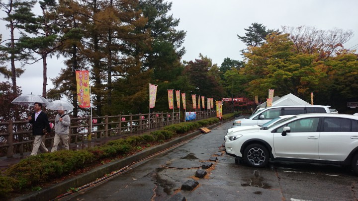 10月24日から行われる「夕焼けの渚紅葉まつり」。会場のそばを通ると関係者の方が準備をしていました。木々の色づきはこれからといった感じですが、日に日に真っ赤に紅葉していくと思います。楽しみですね、近くに来たらぜひ見に行って下さい。駐車場は無料です。今日の山中湖は一日中雨、最高気温15℃最低8℃