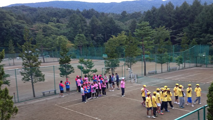 テニスパーソンズプロジェクトさま、テニス合宿に当館をご利用いただきありがとうございます。3班ごとのTシャツがとても個性的で、とても楽しい雰囲気の団体様でした。スタッフ一同、またのお越しをお待ちしております。