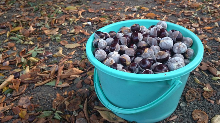庭のトチの実を拾いました