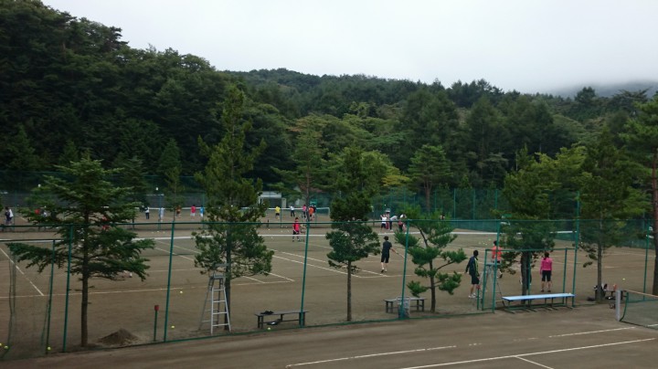 今日の山中湖は曇り夕方から小雨、最高気温21℃最低16℃。宿泊中のローランギャロ様はコート別に練習し、上級者の方が丁寧に教えていました。この合宿で皆さんレベルアップして下さいね。
