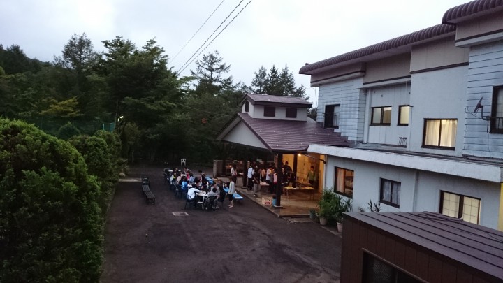 今日の山中湖は雨、夕方から雨が上がりました。宿泊中のローランギャロ様は残念ながら雨のためテニスは出来ずに館内で親睦を図っていましたが、夕食のバーべーキュー時期には雨が上がり、少し寒かったようですがとてもわいわいして楽しそうでした。合宿もあと3日、楽しい思い出を作って下さい。最高気温21℃最低16℃