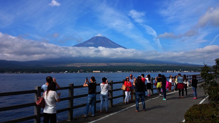 久しぶりに山中湖まで行き青々とした富士山を見てきました。当ホームページの新着情報で確認すると7月27日以来の山中湖からの富士山でした。これから紅葉が目立つ秋の写真撮影が楽しみです。写真は長池地区親水公園、観光客の皆さんも富士山が大好きなようですね。今日の山中湖は晴れ、最高気温27℃最低18℃