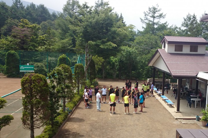 宿泊中の高校生は今日が最終日です。日本中が猛暑の中、避暑地山中湖で少しは涼しい練習が出来たと思います。これから試合がありますが、スタッフ一同、良い結果が出るように応援しています。ご利用ありがとうございました。丁寧なコートのブラシ掛け