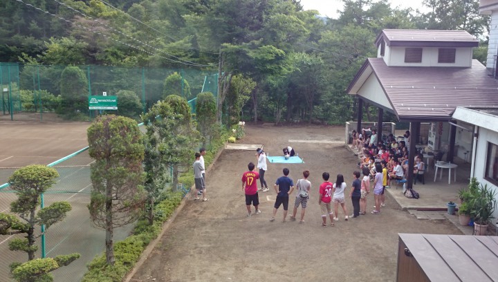 テニス部の皆様、当館をご利用いただき誠にありがとうございました。山中湖でのテニス活動にまたご利用下さい。スタッフ一同、お待ちしております。今日からお越しの硬式庭球同好会の皆様は、ドッチボール大会などのイベントで盛り上がり、親睦がかなり深まったと思います。たくさん良い思い出を残して下さいね。今日の山中湖は晴れ時々曇り、最高気温27℃最低17℃。14/08/03