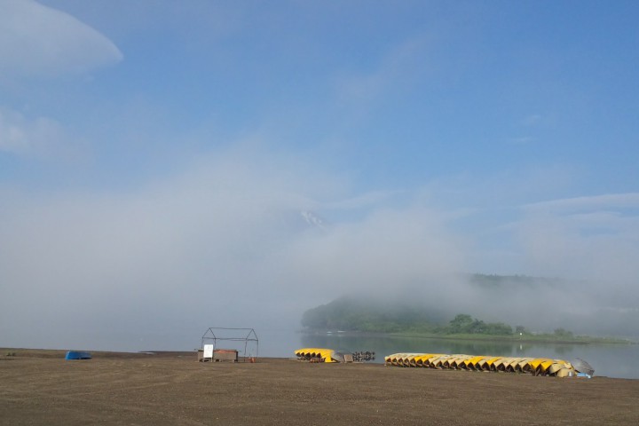 今日は山中湖村恒例の村内一斉清掃の日です。観光地として皆様が気持ちよく過ごしていただけるように、地域で取り組んでいる行事のひとつです。写真は朝6時に担当場所の清掃場所から富士山を撮りました。濃い霧がかかっていて幻想的な富士山、この後青空となり、午前中の最高気温は29℃、夕方から濃霧となり雨が降り出しました。