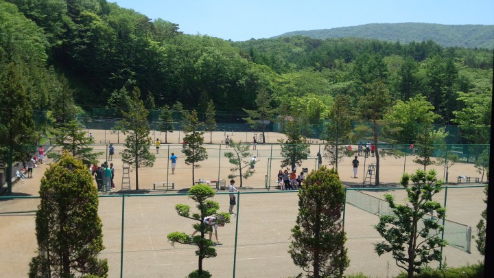 今日の山中湖は快晴、最高気温は29.3℃最低9℃。なんだか夏になってしまったような気温です。昨日は到着が遅かったこともあり、本日が初共立テニスロッヂのテニスコートでのテニスでしたね。通常でしたらもっと快適な気温でテニスが楽しめると思います。また来年もお待ちしております。14/06/01