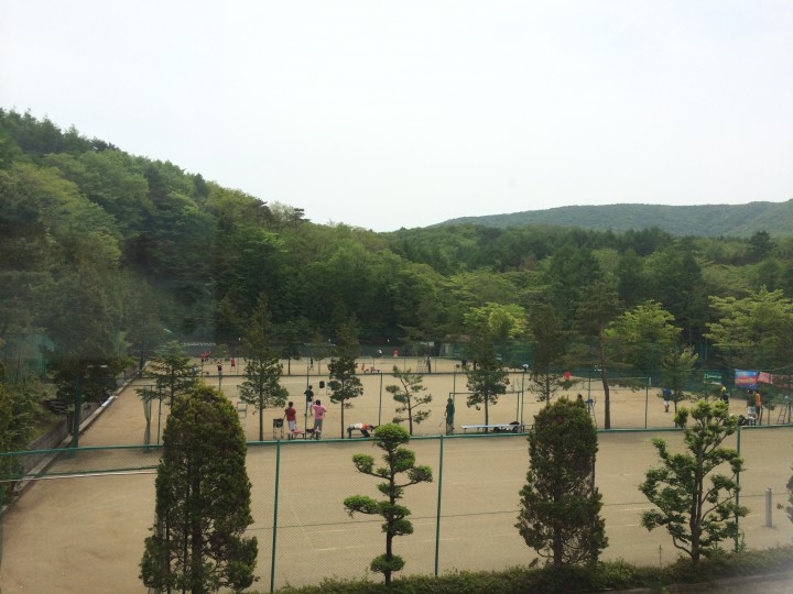 今日の山中湖は晴れ、最高気温21℃最低4℃。日なたは日差しが強く感じましたが、日陰はまだまだ肌寒いです。そんな中、テニス合宿2日目のワールド様、夕方から待望の1年生たちが合流しました。肌寒い夕方にもかかわらず、皆さん元気いっぱいテニスを楽しんでいました。14/05/17