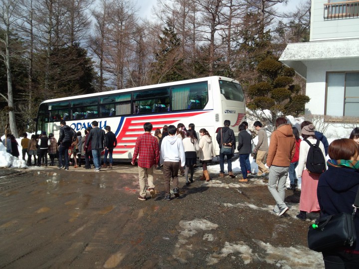 アナウンス研究会の皆様、今年もご利用いただきありがとうございます。記録的な大雪からもう10日も経ちましたがまだまだご迷惑をおかけして申し訳ありませんでした。だいぶ雪も溶けてきてはいるのですが…お帰りになるころには、バスも玄関前まで来ていただけることでしょう。