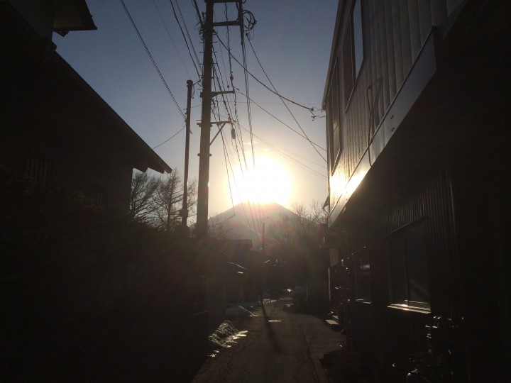 山中湖の長池地区はちょうど夕刻、ダイヤモンド富士が見頃のようで午後3時ごろ車で通ったところサイクリングロードはすごい人だかり。駐車スペースもなかったので…住宅街から見えた今日のダイヤモンド富士です。午前中は山中湖でワカサギ釣り、夕方はダイヤモンド富士と遊びどころ満載な山中湖です。14/01/28