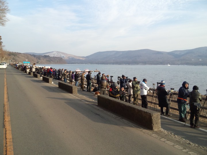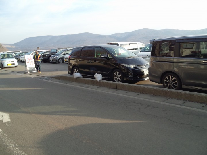 今日の山中湖は曇りのち晴れ、最低気温は-4℃、日中は14.7℃まで上がりました。写真は昨日のダイヤモンド富士フェスティバル会場付近の無料駐車場です。式典は午後5時〜でしたが、お昼前には満車・三脚を構える写真家の皆さんが湖畔沿いを陣取っていました。次は2月11日平野地区で行われます。