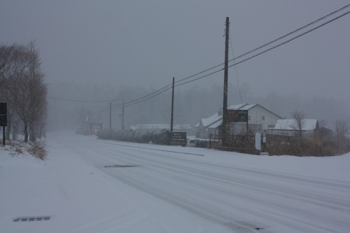 夕方から雪の予報でしたが、午後からちらほら雪が降ったかと思っているうちに、あっという間に雪景色。真冬に逆戻り…。さらさらのパウダースノーですので、雪だるまを作るには向いていない雪質ですね。