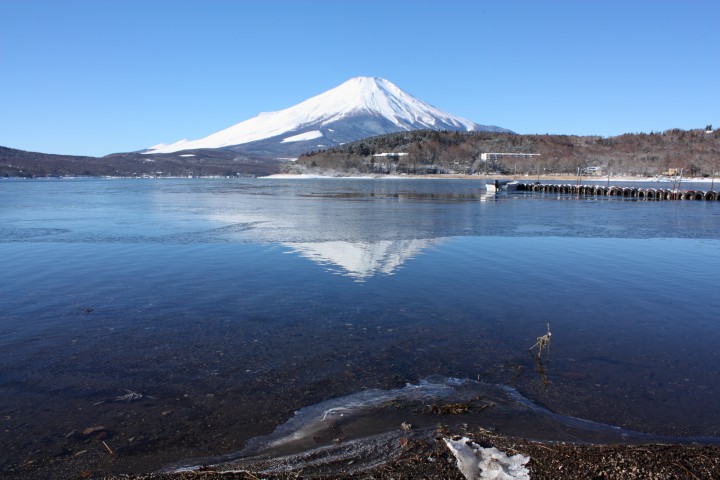 今日の山中湖は晴れ、朝方は-15.2℃まで下がりました。寒いというより、痛いという感じです。山中湖もうっすら凍り始めて、また一層幻想的な写真が撮れそうです。今日も綺麗な逆さ富士が現れていました。