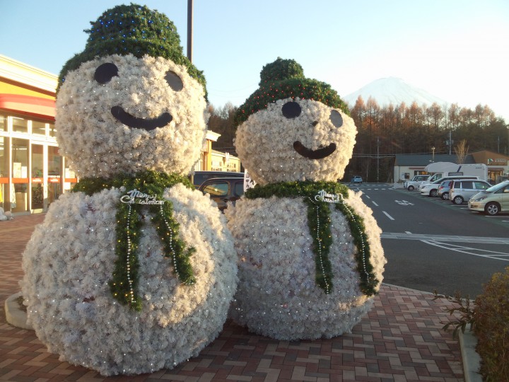 雪だるま発見♪♪といってもまだ富士五湖地方、雪は降っていないのでご安心下さい。河口湖にあるフォレストモールのデコレーションです。暗くなると光ってました。