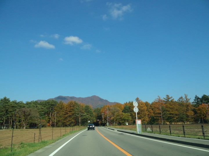写真は花の都へと向かう途中の道路です。寒くなると空気が澄んで景色が綺麗です。