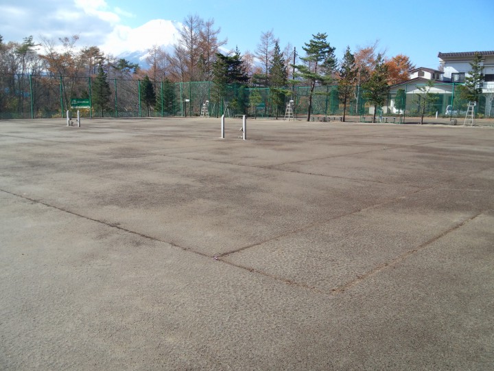 【テニスコートの冬支度】テニスコートのラインテープを取り外しました。