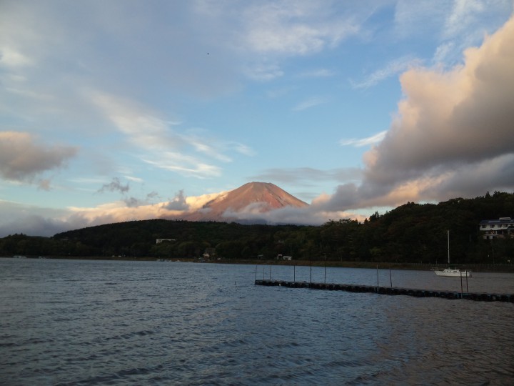 朝方曇っていた山中湖ですが、徐々に晴れ間が見えてきました。写真は午後3時の富士山です。雲が生きているみたいに様々に変化して見ていて飽きません。今日の山中湖は曇りのち晴れ、最高気温25℃最低16℃、暖かい一日でした。