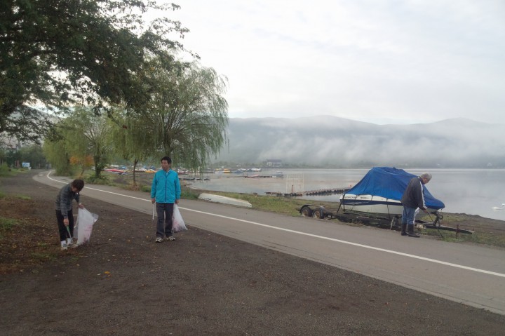 先日9月12日、村内一斉清掃が再開されました。世界文化遺産となった富士山、そしてその一部となった山中湖を綺麗な観光地として皆さんを向かい入れたいと思います。今日の山中湖は曇り、最高気温24℃最低16℃。明日の予報は雨。