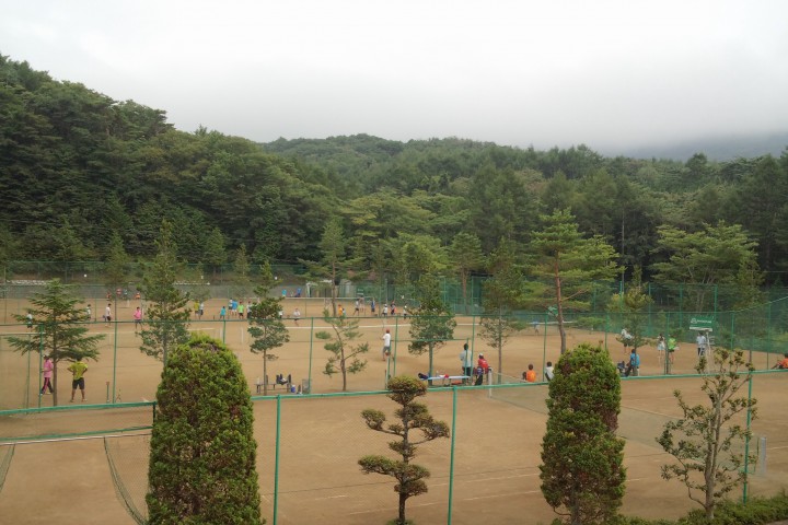 テニスクラブの皆さま、ようこそお越し下さいました。5泊6日の夏合宿に当館をご利用いただき誠にありがとうございます。当館はテニスコートが隣接していますので、テニスをする上でいろいろと都合がよいと思います。思う存分テニスを楽しんで下さい。今日の山中湖は最高気温25℃、最低15℃。今シーズン、初めて秋の陽気を感じた一日でした。