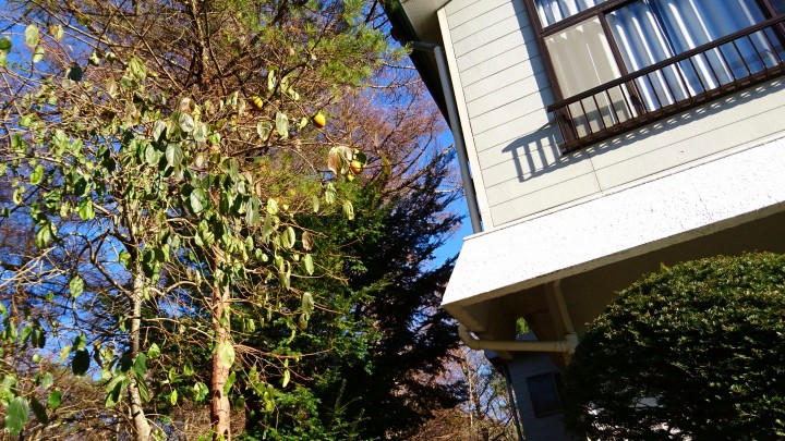 とても小ぶりですが、柿が生っていました。どう見ても渋柿です。数も少なく、今まで実がなったところは見たことがないので、驚きました。カラスにつつかれない様に祈りながら、成長を見届けたいと思います。今日の山中湖は晴れ、最高気温13℃最低-2℃