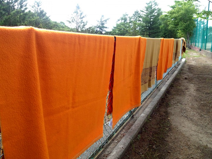 今日天気が良かったので、寒かった時期お世話になった毛布を客室から引き上げました。写真は当館の敷地内で毛布を干している状況です。蝉の鳴き声が大きく響き渡る中での作業は一際暑さを感じました。いよいよ夏シーズンですね。