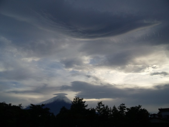 でも山中湖は曇ってますよ。写真はpm6:30、当館テニスコートから撮影。雲が異様な雰囲気です。