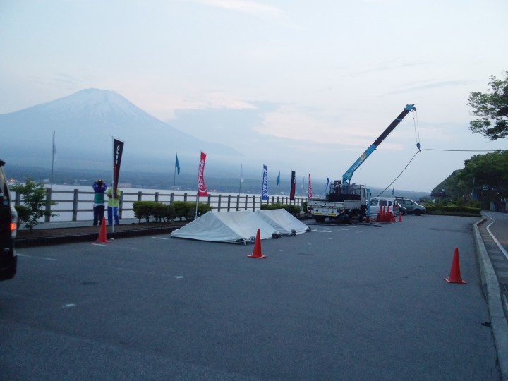 いよいよ前日となりました「山中湖ロードレース」です。1万人以上のランナーをお迎えするため、各方面着々と準備が進められています。明日にそなえ最後の調整といったところでしょうか? 明日の天気予報は「晴れ」です。富士山も見えるといいですね。13/05/25