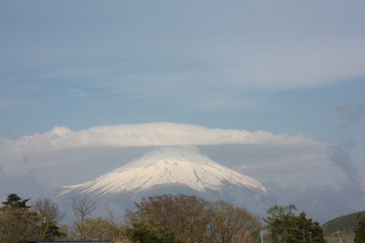 今朝の富士山です。山頂には傘雲がくっきり現れています。富士山天気予報によれば「今日の天気」は雨です。(気象庁の予報も午後から雨でした)
