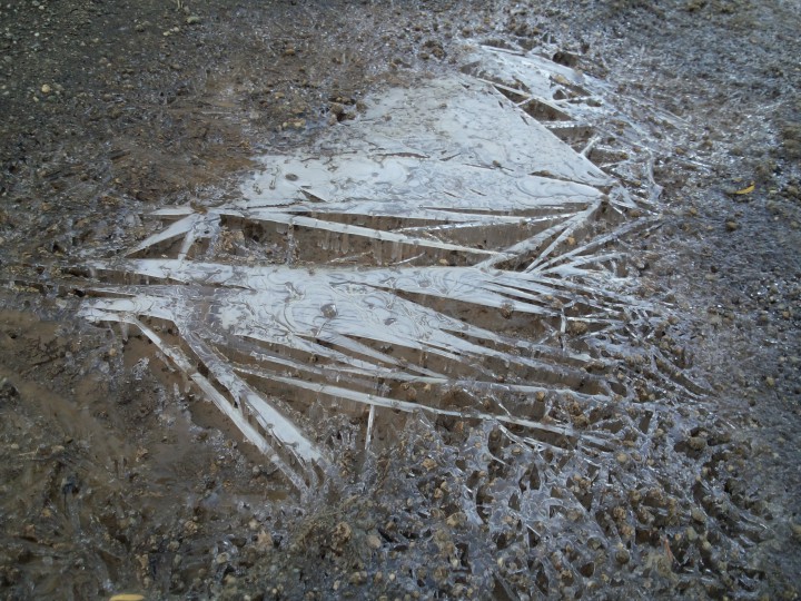水たまりが凍っていました